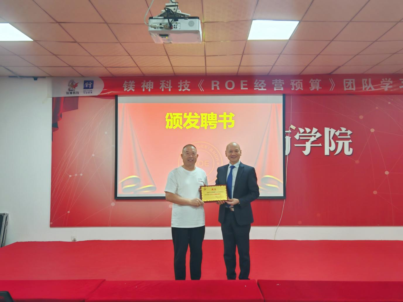 本次培訓特邀企業經營預算領域實戰專家付小平老師擔任主講,付老師擁有十余年大型企業預算體系搭建經驗,更是ROE預算系統的創始人。他深耕企業實踐、扎根一線經營,讓其課程兼具理論高度與實踐溫度,憑借“復雜理論通俗化、實操方法工具化”的授課風格,付老師的課程在業界廣受好評。董事長兼總裁孫文為付老師頒發“ROE預算總教練”聘書。